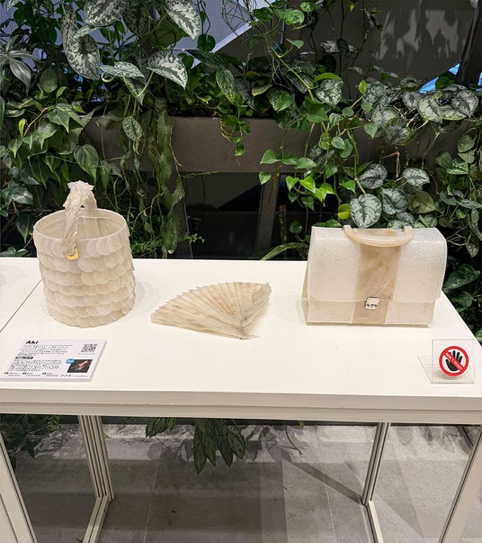 ■Aki プロフィール:2019年、廃棄されたビニール傘をバッグにアップサイクルする「10年後になくなるべきブランド PLASTICITY」を始め、バッグの主素材として「GLASS RAIN」生地を考案。GLASS RAINを中心とする作品や企業とのタイアップなどの制作活動を続ける。