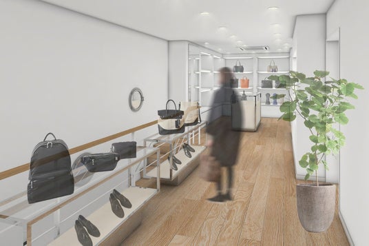1階はカジュアルアイテム、2階にはビジネスアイテム中心に定番アイテムは勿論、銀座本店エクスクルーシブの特別な商品も展開します。