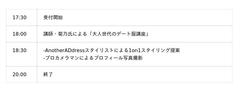 イベント名:デート前夜のときめきクローゼット~ラス恋世代のデート服ビフォーアフター体験~日時:2026年3月24日(火)17:30開場/18:00開始/20:00終了