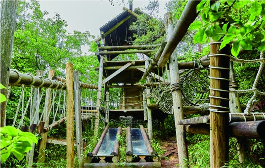 生駒の起伏に富んだ地形を活かした全長約800m、全部で30の遊具が待つコース。森の中を駆け巡る体験は、お子様には冒険そのもの、大人には心地よい運動不足解消になります。