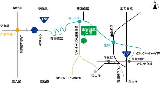 特に大阪・奈良市内からのアクセスが良く、移動時間を抑えて活動時間を長く確保できるため、学校行事にも最適な生駒山麓公園。大阪市内からも車で約30分で到着します。