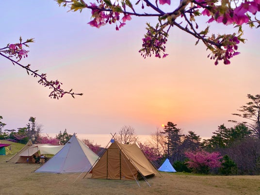 神割崎キャンプ場では、新サイト以外にも四季折々の風景を楽しむことができます。春(3~4月)は桜、初夏(5~6月)はニッコウキスゲ、秋は紅葉など、季節によって変わる風景とともに過ごすキャンプ時間は、いつでも思い出せる特別な体験になるのではないでしょうか。