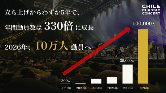 今後より国内・さらに世界へと拡大を目指していく『CHILL CLASSIC CONCERT』は、上質なトップオーケストラの生演奏を、非日常的な空間でくつろいで楽しむことで、癒しや感動を味わうことができる、エンターテインメント体験を提供しております。
