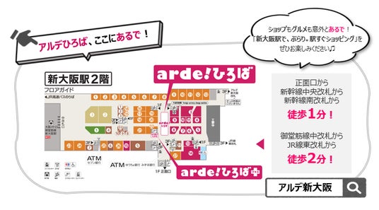 「アルデ新大阪」は、大阪・関西の玄関口である新大阪駅の2階(改札外)にあるショッピングセンター。