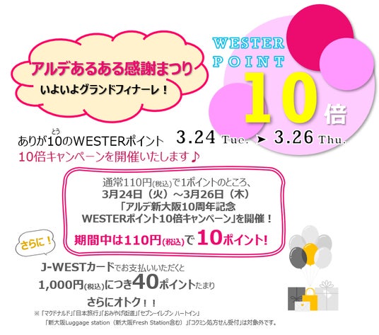 <<アルデ新大阪>>アルデあるある感謝まつりいよいよグランドフィナーレ!ありがとうのWESTERポイント10倍キャンペーン