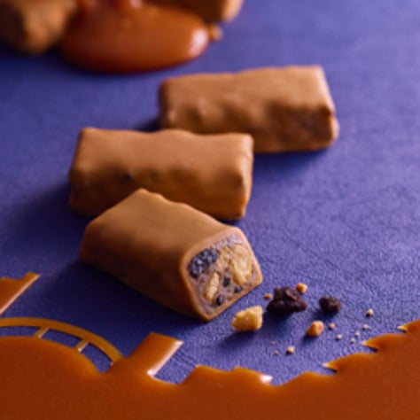 ブラックサンダーシリーズの地域限定商品が好評につき再登場!ブラックサンダーのザクザク食感に、キャラメルパウダーを練り込んだチョコレートでコーティング。