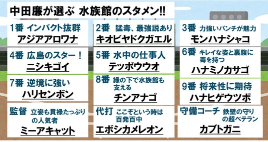 内容:アンバサダー中田廉が選ぶ『水族館のスタメン』発表!