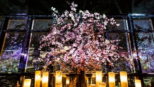 ストーリー仕立ての春らしいマッピングで、暗く長い冬の東京に春の明るい光が差し込み、動物や植物たちが目覚めるシーンからスタート。春の訪れを喜び、森の中に活気が満ちあふれる中、きらびやかな夜景の中に満開の桜が咲き誇り、夜桜と東京の夜景が混ざり合っていく様子を目の前で味わうことができます。