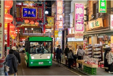 「関内マーロ」はBASEGATE横浜関内を起点に、横浜関内に精通したガイドと周辺の街を楽しめる、グリーンスローモビリティ(※)です。横浜中華街、赤レンガ倉庫、馬車道、野毛など、窓の無いオープンバスで、横浜を街のにおいとともにお楽しみいただけます。