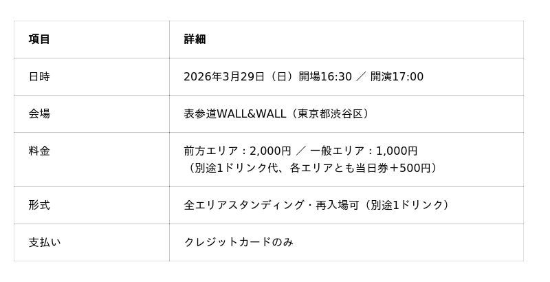 チケット販売期間: 一般発売 2026年3月19日(木)22:00 ~ 3月29日(日)16:30