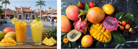 また、アルコールをお召し上がりにならない方にもお楽しみいただけるよう、「マンゴージュース」「パインジュース」もご用意。世代を問わず、台南フルーツの美味しさをご堪能いただけます。