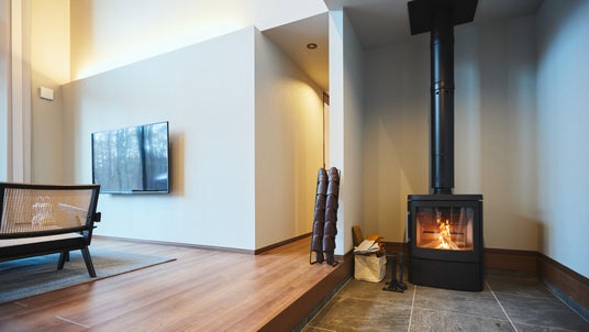 広々としたウッドデッキや薪ストーブのあるリビングで、愛犬とのリラックスタイム。