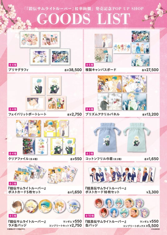 ▲「『鎧伝サムライトルーパー』画集 桜華絢爛」グッズ新商品リスト