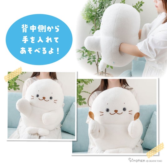本商品は、アニメ放送を待ちきれない皆様へ向けた、自分だけの“動くしろたん”を楽しめるパペット仕様のぬいぐるみです。ひょこひょこと動かしてみたり、お話しさせてみたり。アニメの中で生き生きと動き回る『しろたん』を一足先に体感してみてください。