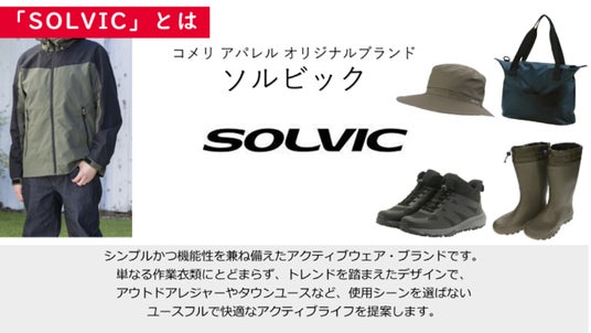 コメリオリジナルブランド「SOLVIC(ソルビック)」について「大地(フィールド)を制する者」をイメージし、コメリがこれまで重視してきた