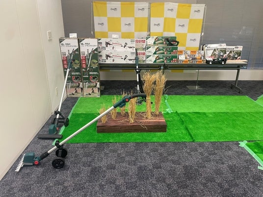 2026年5月、B-Shareから草刈りの常識を覆す『充電式草刈機グランドトリマー』が登場。最大の特徴は、タイヤで支えられているので、押すだけで草が刈れること。従来の肩掛け式のように重さを支える必要がなく、大径タイヤが凸凹道もしっかり走破します。角度調整機能を使えば、腰を曲げずに自然な姿勢のまま作業が可能。また、バリカン刃の採用により、高速回転刃特有の怖い跳ね返り(キックバック)を解消しました。パワフルなブラシレスモーター搭載で、静音性とメンテナンス性も抜群です。まるで外で掃除機をかけるような軽やかさで、お庭の手入れがもっと安全で身近なものに。体験会での実演でも、その手軽さに驚きの声が上がりました。こちらの商品はオンラインショッピングサイト「コメリドットコム」にて現在予約販売中です。