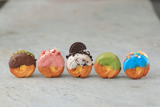 国産バターを100%使用したパリッと香ばしいデニッシュ生地に、カスタードクリームを絞った新定番スイーツです。カラフルなチョコレートは店舗で一つ一つ丁寧にコーティングしています。「トフィー&ピスタチオ」「ストロベリー&ホワイト」「クッキー&ホワイト」「ヴェール・ド・サヤマ(狭山抹茶)」など、選べる楽しさをご用意しました。お得な5個セットは、手土産や食べ比べにもおすすめです。
