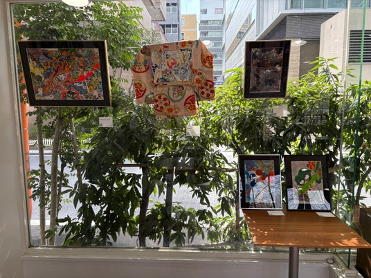 本日最終日(17時まで): 目黒川沿いの特設ギャラリーにて、U-25の気鋭アーティストたちの実物作品を展示中。