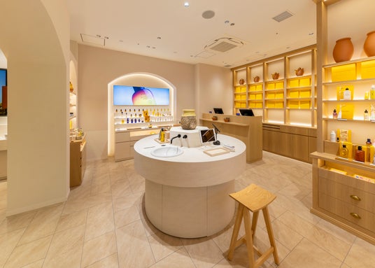 奥に広がるエキスパートゾーンでは、お客様にメゾンのボディケア、フェイスケア、ヘアケアについて深く探求し体験していただけます。象徴的なラウンド型のシンクエリアにて、ぜひ感覚的な新発見をご体感ください。