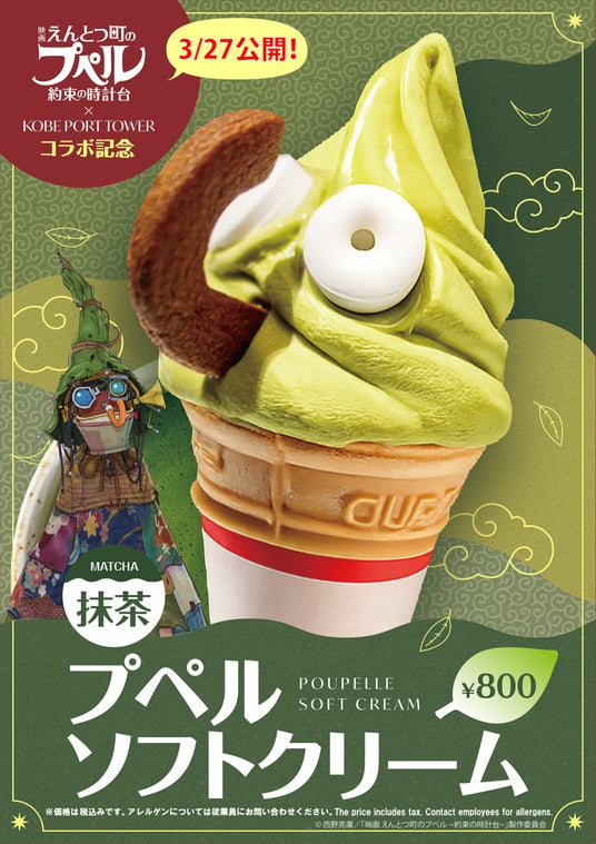 低層1階でご購入いただけるプペルソフトクリームはプペルの表情を再現。抹茶の香りと渋味をバランス良く仕上げました。