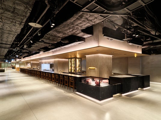 全周50m・約60席の大理石バーカウンターを備えた 牛丼レストラン「牛丼喜喜屋」