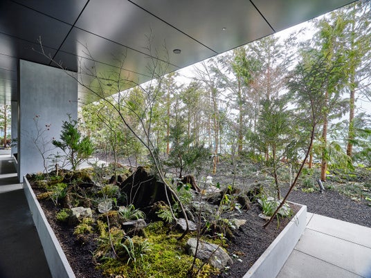 100年先の未来へと続く空間を。石や金属、タイル、ガラスなどの素材が持つ美しさと、草木や岩による自然の循環を掛け合わせ、シンプルでありながら深い存在感を放つ空間を創出。余計な装飾をせず、素材本来の力で食や体験、人と人との交流を彩り、時を蓄積しても色褪せない価値を宿します。
