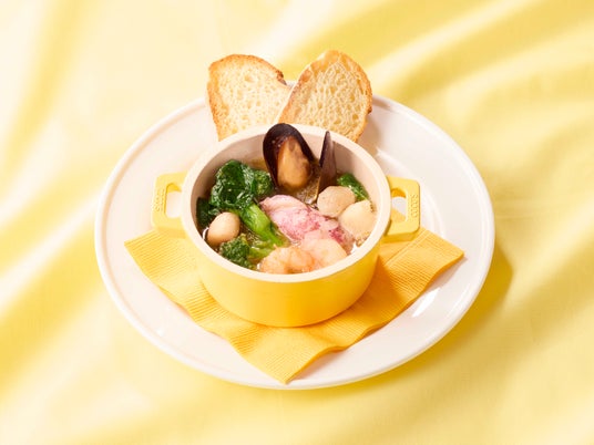 春が旬の菜の花と、ムール貝や海老、小柱、イカといったシーフードが入った具沢山なアヒージョです。バゲットを旨みたっぷりの具材と合わせたり、ガーリックの香りが食欲をそそるオイルソースに浸したりしてお召し上がりください。
