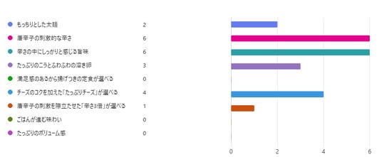 調査の結果、「唐辛子の刺激的な辛さ」「辛さの中にしっかりと感じる旨味」が同率1位となりました。「辛うま麺」という名前の通り、しっかりとした辛さと、辛いだけではないコクや旨味が支持を集める結果となりました。