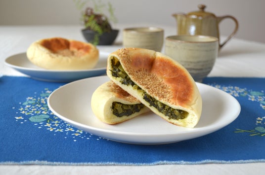 長野県の代表的な郷土料理「おやき」をイメージした惣菜パン。