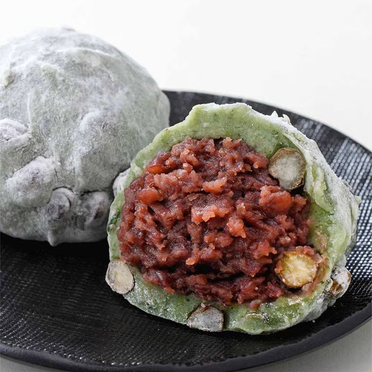 十勝産あずきで炊き上げたつぶあんを、北海道産えんどう豆と丁寧に手摘みした茨城県産よもぎを練り込んだやわらかなお餅で包みました。よもぎの濃厚な香りと深い味わい、食後に広がる爽やかさが魅力です。