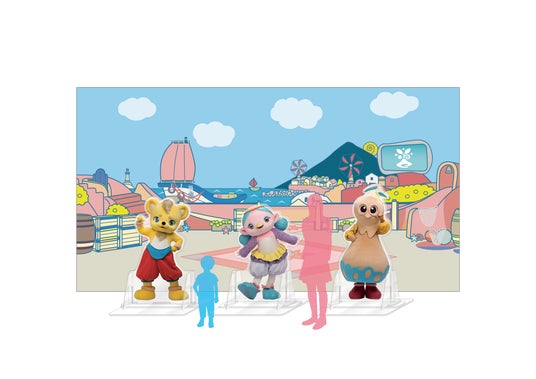 ミニステージに登場する人形劇キャラクターたちのフォトスポット展示や、新作映像コンテンツ「ファンターネ!と一緒に踊れるからだ☆ダンダン」コーナー、おかあさんといっしょの人気曲「ももいろほっぺ」「ボン!とうまれたぼくたちは」のお兄さん、お姉さんの⾐装展示など盛りだくさん!