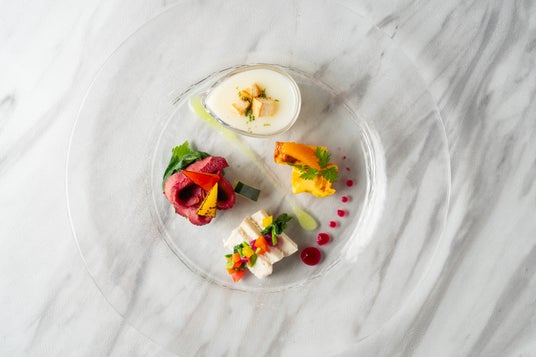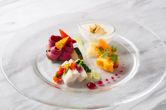 やま星は長野県南信州の旬野菜・山の恵み、コレドール湯河原は湯河原町近郊の地魚など、土地性を一皿に映す構成となっております。