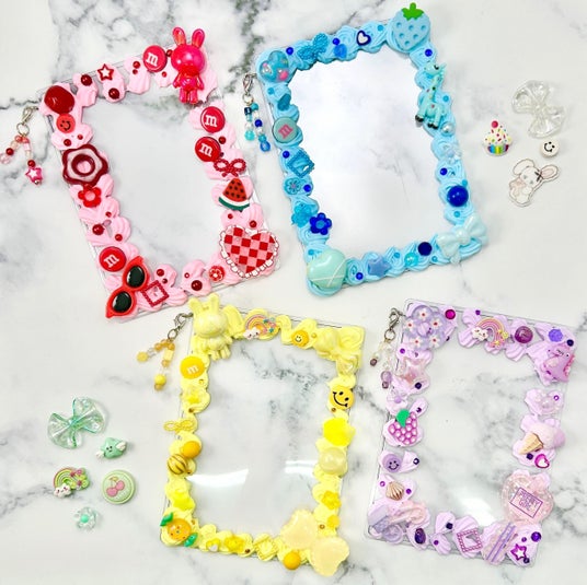 L判の写真が入るハードカードケースに、全7色から選べるデコレーションホイップを絞り、お好みのパーツで飾り付ける、自分だけのオリジナルカードケース作りワークショップです。