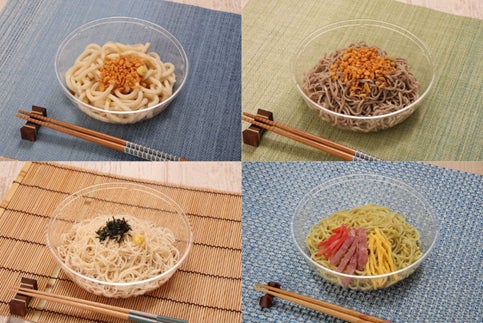 (左上:冷しうどん/右上:冷しそば/左下:冷し素麺/右下:冷し中華)