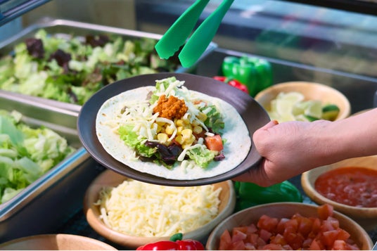 肉、野菜、ソースなどを自由に組み合わせ、自分だけの「MYタコス」を作ることができます。組み合わせは無限大。