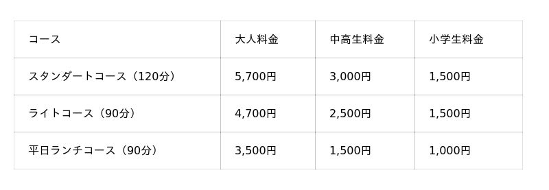 ※延長料金はお一人様30分1,000円です。