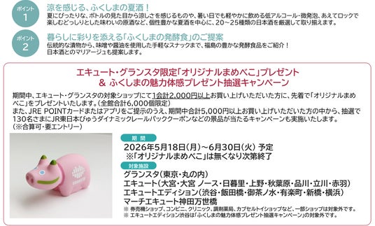 また、期間中には東京駅改札内地下1階のイベントスペース「スクエア ゼロ」にて実施する「福島産直市」を中心に当社ならではのイベントも開催し、福島を巡っているような心躍る時間を提供します。