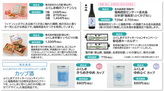 「福島MEGURIP」では、JRグループと県・市町村・地元の観光事業者などが一体となって、各地域の魅力を発信する観光キャンペーン「ふくしまデスティネーションキャンペーン」に合わせ、地域の食材を使用した商品や、ご当地企業とのコラボ商品、銘菓、ご当地商品などをJR東日本クロスステーションが運営するさまざまな施設や店舗で販売してキャンペーンを盛り上げます。