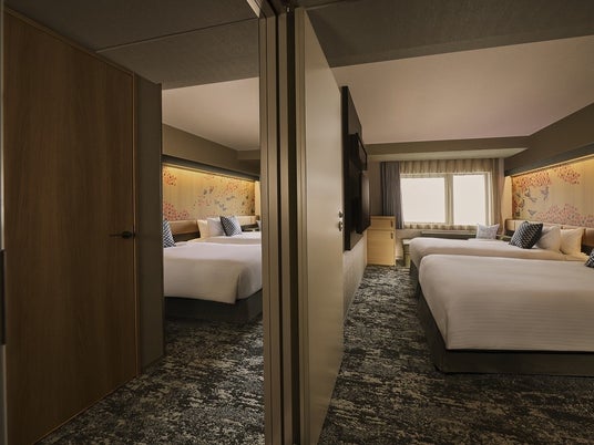 ゆったりくつろげる客室は、全室24平米以上で、洗い場付バスルームと独立洗面台、独立トイレを備えます。また、多人数グループでも滞在いただけるよう、一部の客室にはコネクトルーム機能を備え、最大7名様まで宿泊可能です。