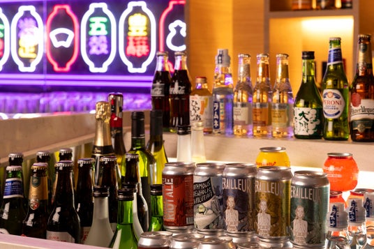 夜になると、パブとして表情を変え、はらわた ちゅん子 氏が手掛けるネオン輝く空間で、「串カツ」や、「プリンアラモード」など、ローカルフードをアレンジした料理やスイーツなどが登場。ドリンクは、大阪市西成区のビール醸造所「Derailleur Brew Works(ディレイラ ブリュー ワークス)」の"西成ライオットエール"をはじめ、オリジナルカクテル等、約 50種以上を提供します。
