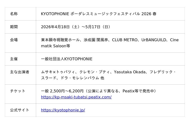 KYOTOPHONIE 2026 Spring 各公演概要