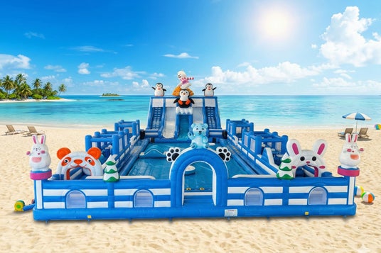 ペンギンビッグウォーターパーク(背景はAIによる合成)。プール上の浮島は付属しておりません。
