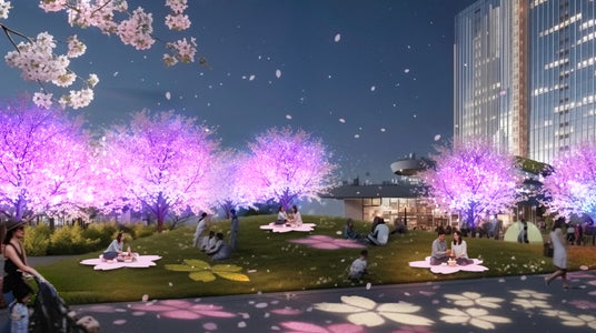 1.STATION PLAZA:季節を彩る大階段プロジェクションマッピング大井町の玄関口となる大階段では、季節ごとに変わるデジタルアートを投影。2026年3月28日のまちびらきでは、桜の花びらが舞い踊る「SAKURA SYMPHONY」を公開。また、大井町にゆかりのある花火をテーマにした「FIREWORKS FEST」など、訪れるたびに新しい驚きを提供します。
