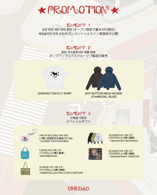 本POP-UPでは、女優・出口夏希さんをキャンペーンモデルに迎えた「OHESHIO」の新作エッセンシャルラインをご覧いただけます。洗練されたデザインとブランドならではのレイヤードディテールを、ぜひこの機会にお楽しみください。また、東京POPUP限定アイテムや購入金額に応じた限定ノベルティもご用意しております。