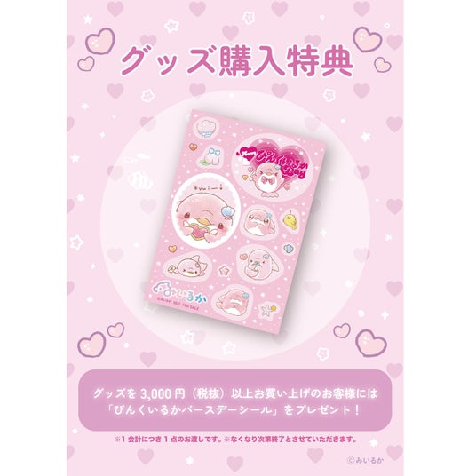 お買い上げ特典:税抜3,000円以上お買い上げのお客様に「ぴんくいるかバースデーシール」を1枚プレゼント!