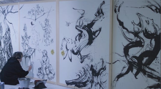 昨年2025年に描かれた甲巻では擬人化された動物たちが遊戯に興じる姿を描かれたのに対し「乙巻」では実在の動物と架空の怪獣(麒麟、獏、龍など)を写実的な白描(墨線)が描かれる予定。「躍動感あふれる作品にしたい」と西元氏は語る。