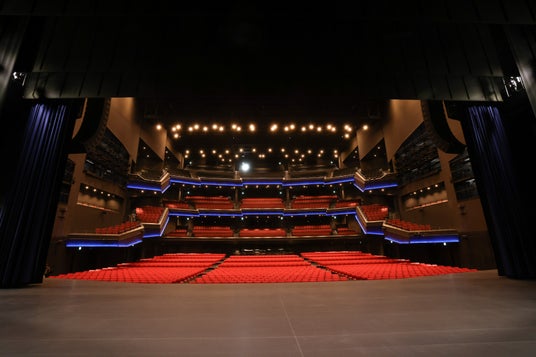 約1,500席を有する劇場。座席は人間工学に基づいた設計を採用し、視界に配慮した“千鳥配列”や足元スペースの確保により、快適に観劇していただけます。床・壁・天井を分離した「浮き遮音構造」により外部からの音の影響を受けにくく、壁面は音が均一に届くよう設計されており、セリフや歌詞をクリアに楽しめる環境を整えています。