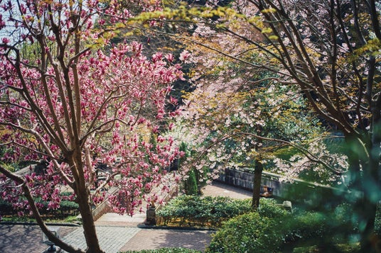 枝垂桜とシモクレン(オリエンタルガーデン付近)※シモクレンは現在咲き始め