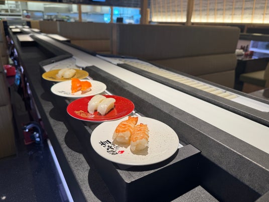 上段レーンではお寿司をお届け