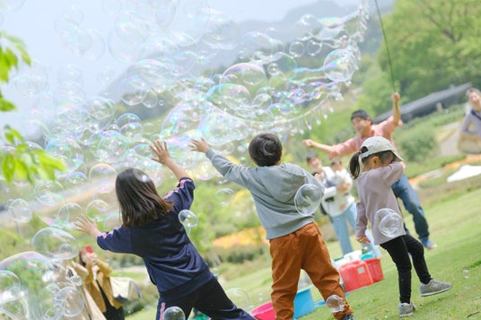 シャボン玉ショーシャボン男爵による青空の下でたくさんのシャボン玉を飛ばすショー。子どもたちと一緒にシャボン玉を飛ばす体験会も実施。